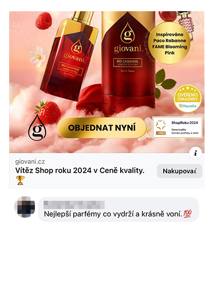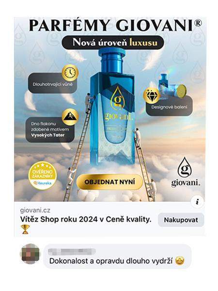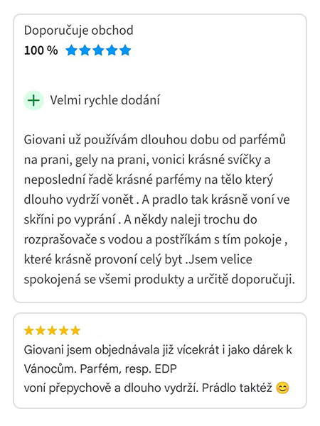 Giovani® egy luxus parfümmárka. Jelenleg 14 EU-s országban vagyunk jelen, és több mint 1,6 millió elégedett vásárlóval büszkélkedhetünk. Termékeink hosszú távon 99% feletti értékelést kapnak. Elnyertük az Év Terméke 2024 és az Év Webáruháza 2024 díjakat.