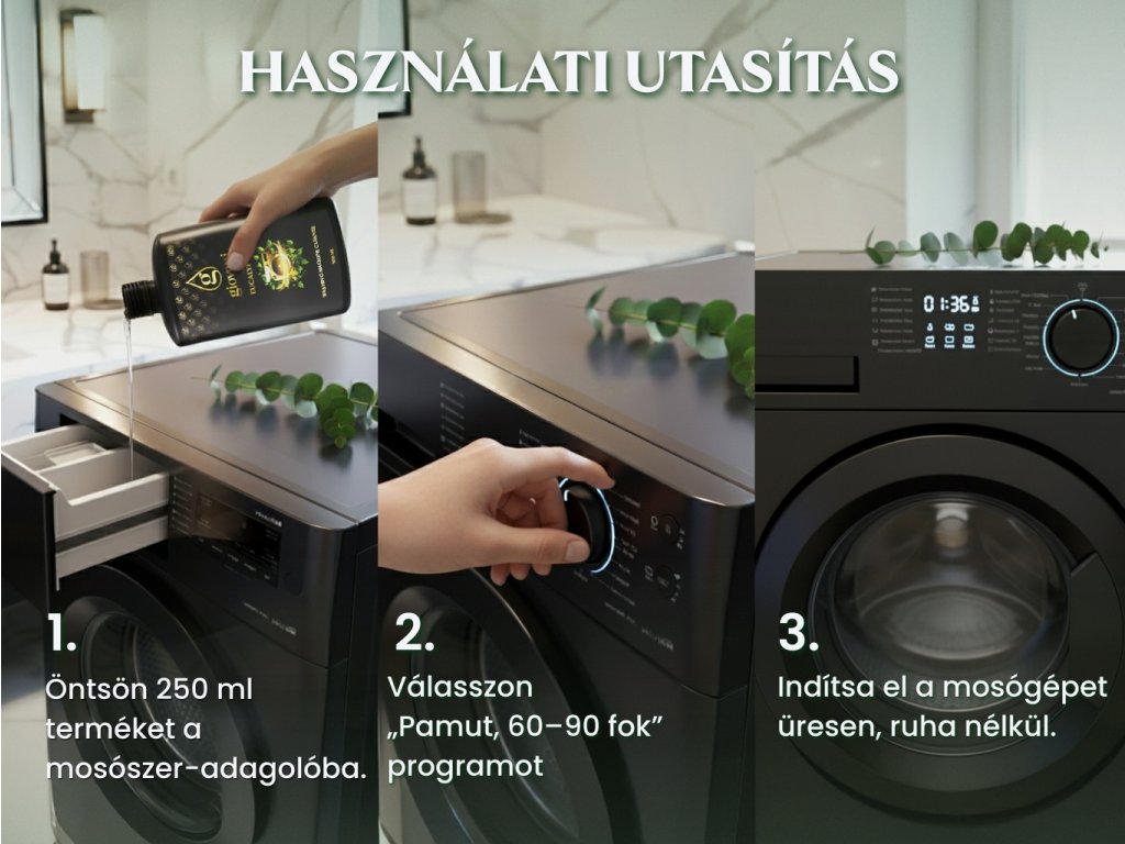 Használja havonta egyszer a mosógép optimális teljesítményéhez.