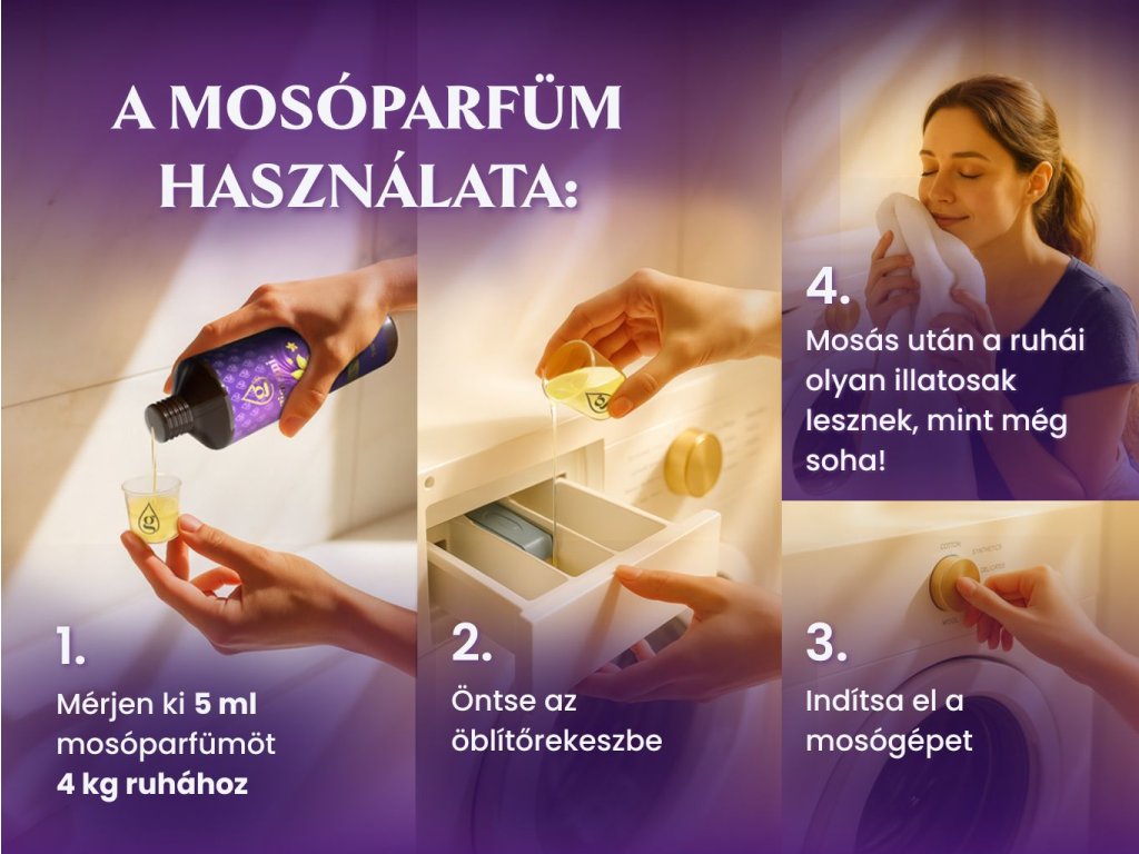 A mosóparfümöket ne öntse közvetlenül a mosógépdobba, sem szárítógépbe. Egyenesen az öblítőrekeszben való használatra alkalmasak. Nem kell amiatt aggódnia, hogy a szárítóban való szárítást követően a ruha veszítene az illatából. A Giovani® parfümök ellenállnak a külső hatásoknak és tartósak. A kimosott ruha a szárítógép használatát követően is illatos lesz. A mosóolajok ideális tárolási hőmérséklete megközelítőleg 15-25 Celsius-fok.